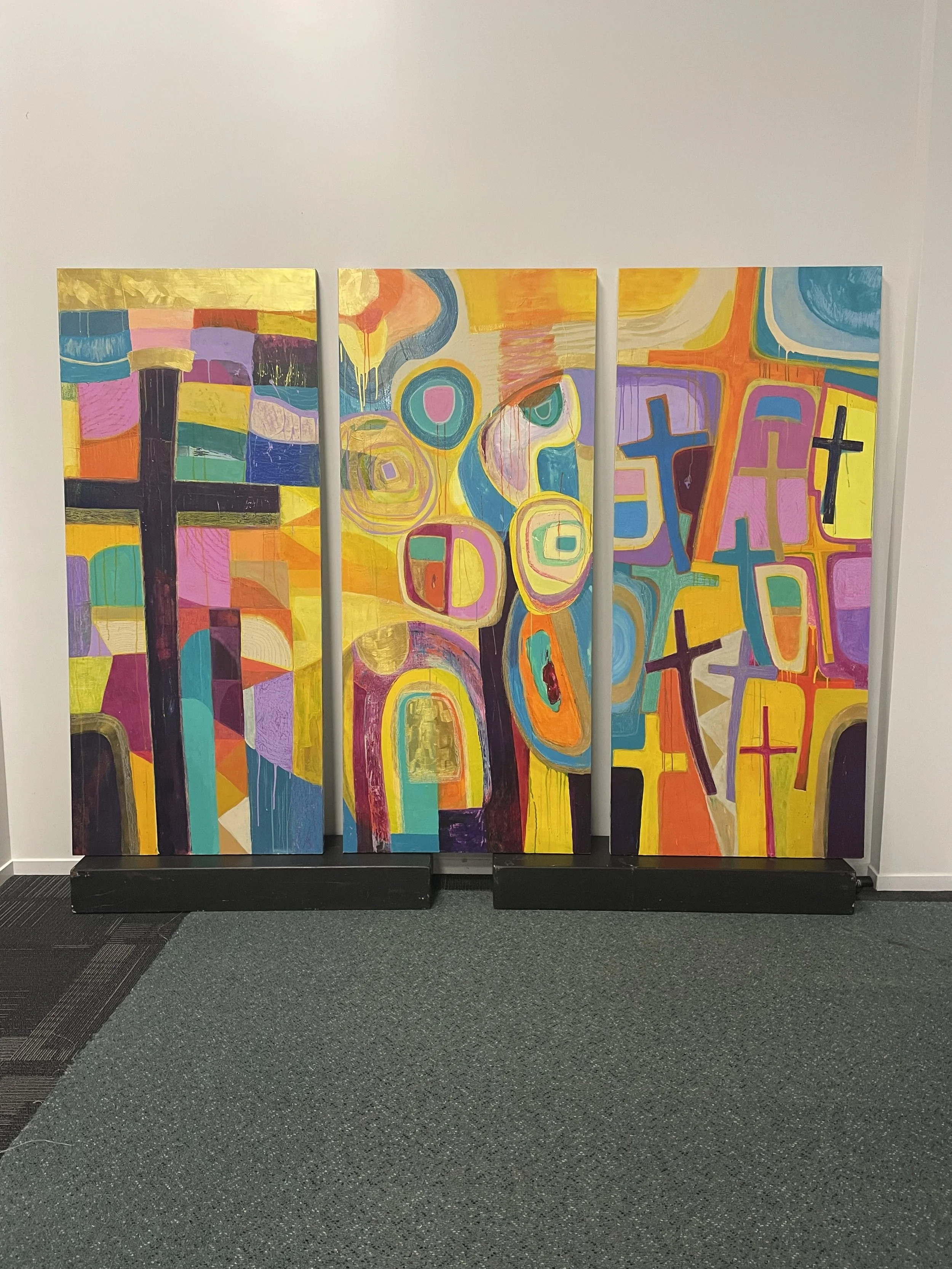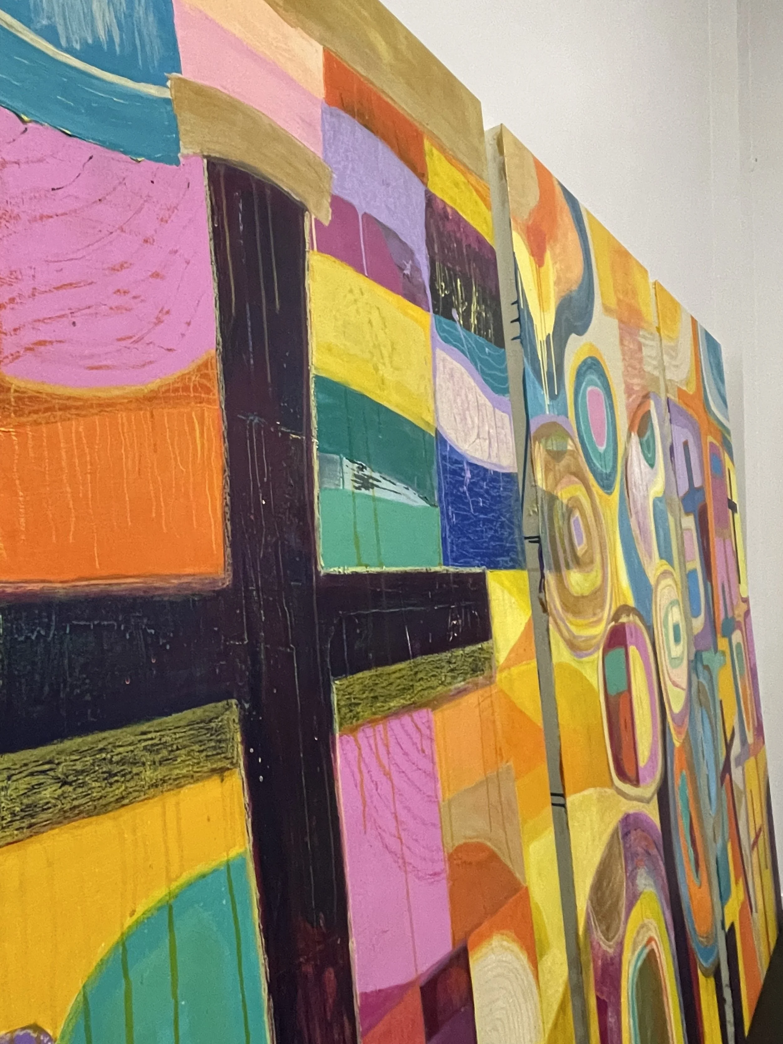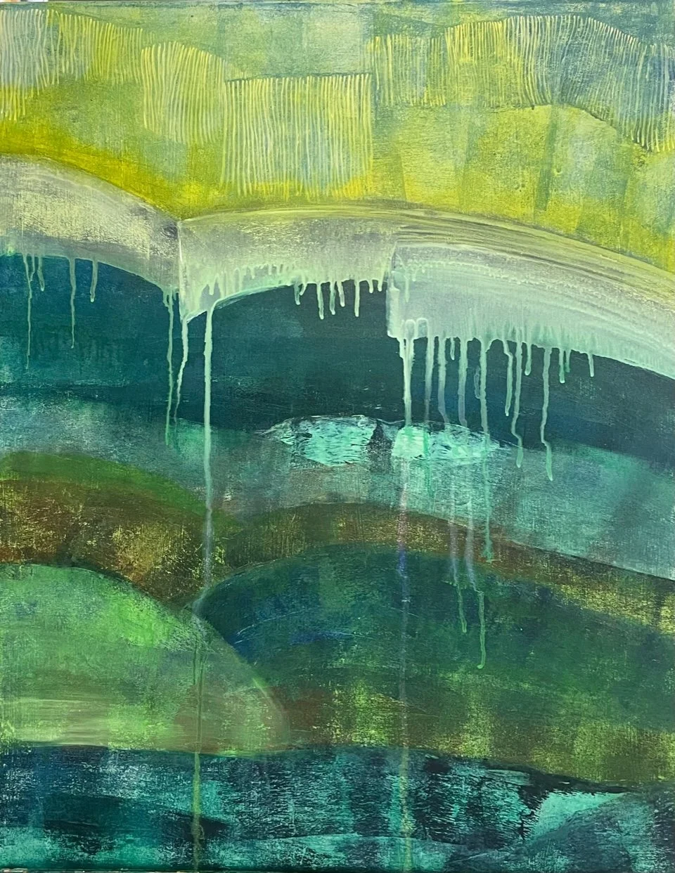I am a painter working mainly in acrylics, drawing inspiration from the external landscape and environment: physical, relational, and spiritual; from the internal landscape of spirit, heart, and mind; and from the interactions and relationships between them.